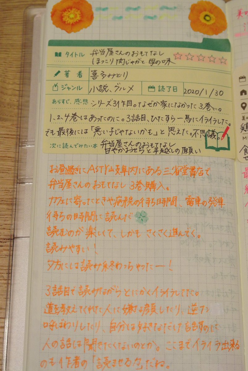 かなかな Twitterissa 読書記録 弁当屋さんのおもてなし 読み終えました 上のタイトルや著者の名前が書ける紙はキングジム Kingjim さんの 暮らしのキロク Book 読書 読書記録 ほぼ日手帳weeks 手書き 手書きツイート T Co Znvf53y2a2
